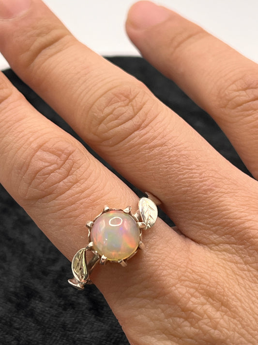 Edel Opaal Zilveren Ring met Blaadjes - Intuïtie & Natuurlijke Flow