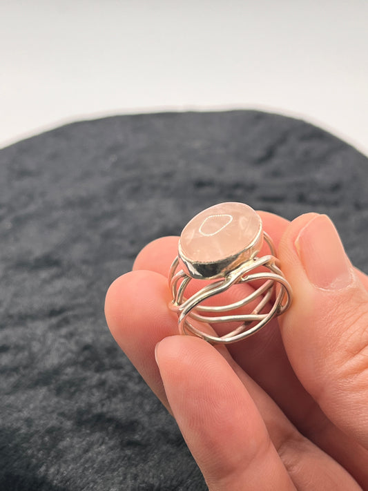 Rozenkwarts Zilveen Ring - Zelfliefde & Verbondenheid in Draadjesdesign