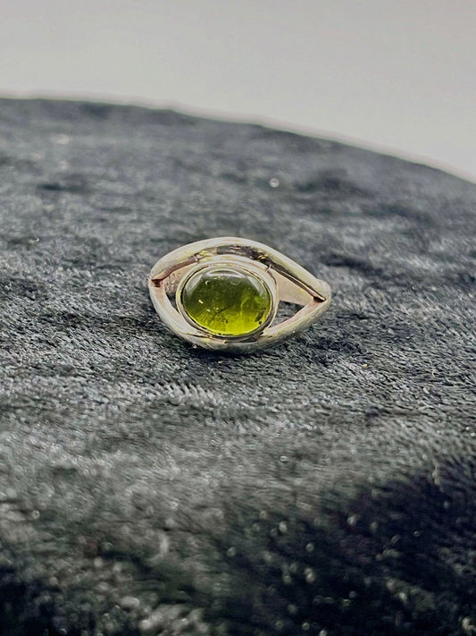 Groene Toermalijn Zilveren Ring - Bescherming & Hartkracht in Oogvorm